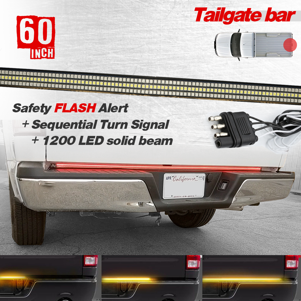 LED Tailgate Light Bar Sequential Signal Brake + Strobe Brake Alert
